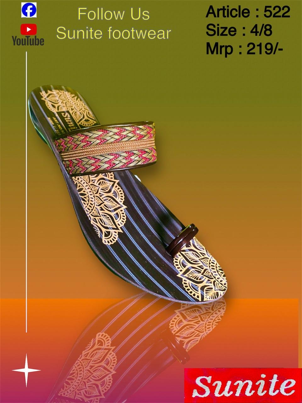 Sunite Kolhapuri-style One-Toe F Flip-Flopd size 4-8